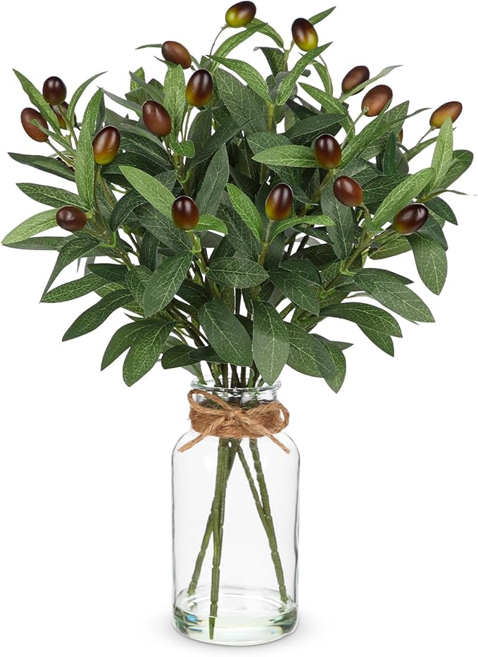 - Realistic Fake Olive Plants: Lifelike olive stems in glass vase with faux water, these fake plants indoor adds a touch of nature to any space. The premium quality materials ensure a realistic look and feel, bringing the beauty of olive into your home without the hassle of maintenance