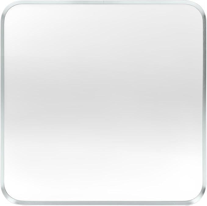 Wall Mount Mirror for Bathroom, Brush Silver Metal Framed Rounded Corner Square Rectangular Vanity Mirror (30" x 30", Silver)