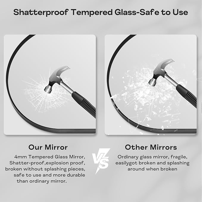 - High-Definition mirror: The black bathroom vanity mirror adopts high-definition imaging technology, which is as clear as crystal, ensuring that the imaging at all angles and distances will not be deformed and blurred, showing its true beauty. And the arched bathroom mirror uses 4MM Tempered Glass, can effectively prevent damage during transportation