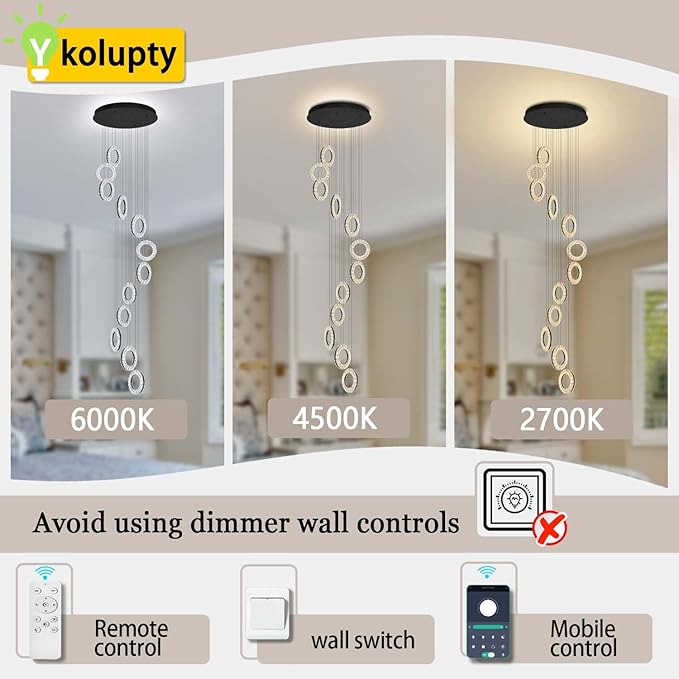 - 【Smart Modern led Chandelier】: It is equipped with a remote control and APP control for seamless dimming between warm white (2700K) and cold white (6000K), as well as adjustable brightness ranging from 5 to 100 percent.