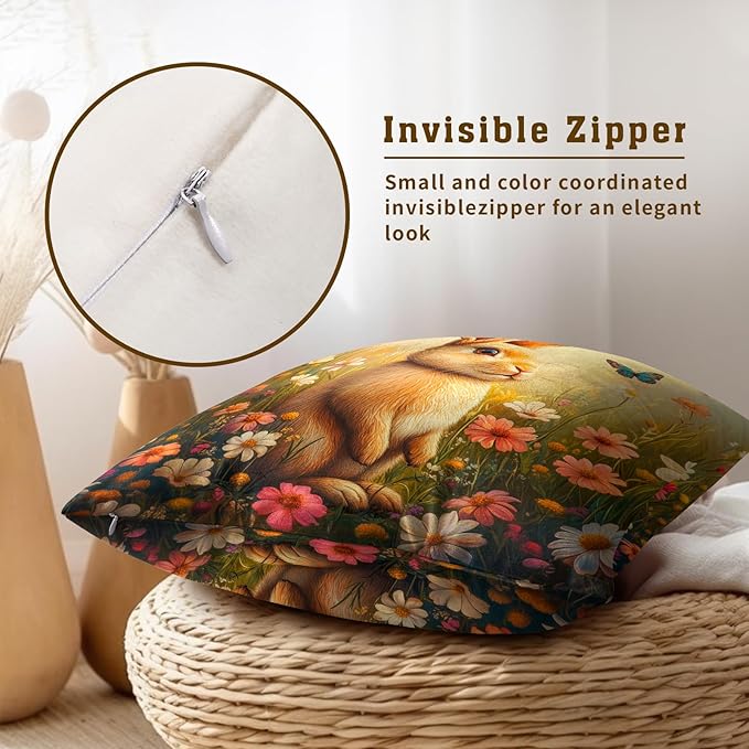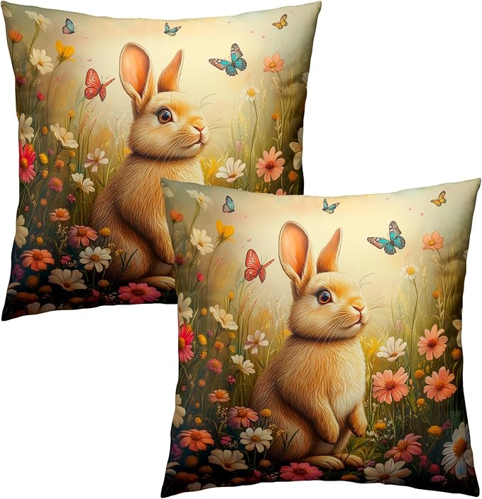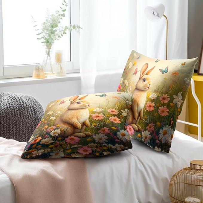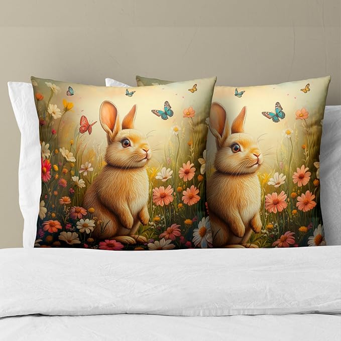Giwawa Easter Bunny Throw Pillow Covers 18x18 Inch Flower Butterfly Decorative Pillowcase Set of 2 Couch Cushion Case for Sofa Home Living Room