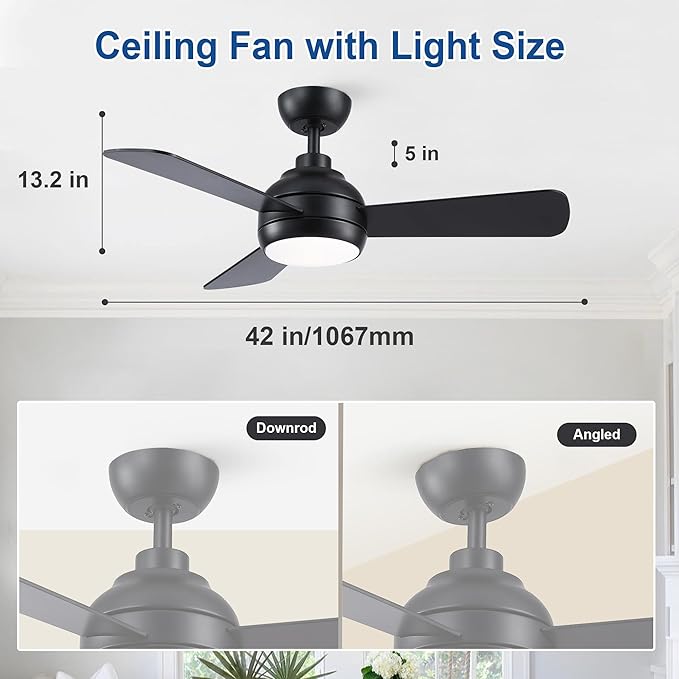 42 Inch Ceiling Fans with Lights, Black Ceiling Fan with Light and Remote Control, Reversible, 6 Speeds, 3CCT, Dimmable, Modern LED Ceiling Fan for Bedroom, Indoor/Outdoor