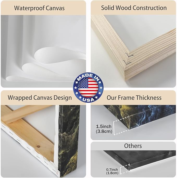 - Premium Material: Made in the USA, use brand new canvas and pine wood, the canvas material is waterproof ensure durability and longevity, each canvas art is available different sizes for your choice