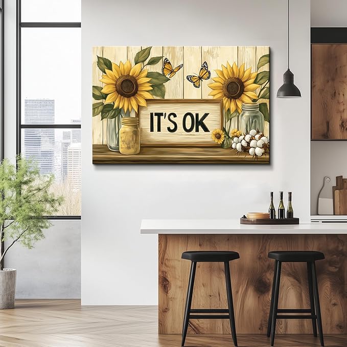 - Country Farmhouse Wall Decor: This kitchen sign painting features text and vintage colors that are perfect for enhancing the ambiance of any space, hang this piece of kitchen art to elevate the style of your home and bring a touch of rustic charm to your decor