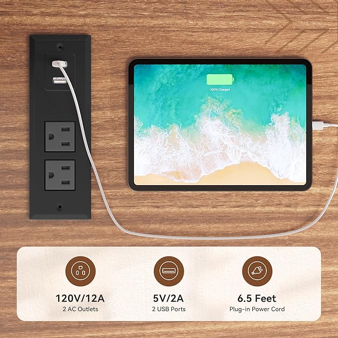 - Convenient Charging: Includes 2 USB ports and 2 3-hole sockets for easy charging of devices such as microwave, coffee maker, and phones while enjoying drinks