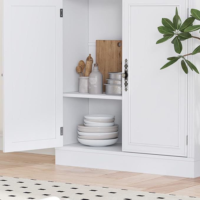 - Premium Build & Sturdy Construction – Made of high-quality engineered wood, each shelf supports 35 lbs, while the metal handles on the doors enhance durability and ease of use.