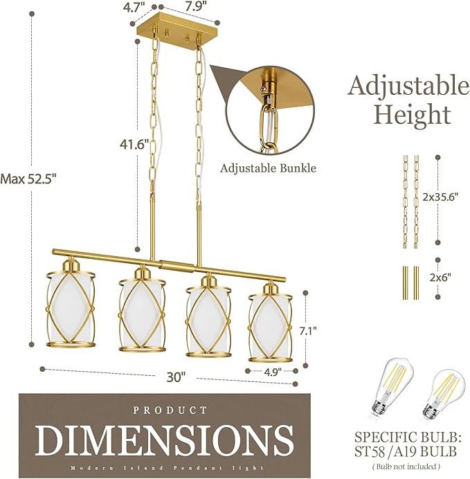 - Dimmable and Works With Most Bulbs: These brushed gold linear chandeliers for dining room require 4 It is fully dimmable when used with a dimmable bulb and compatible dimmer switch(Bulb NOT Included)