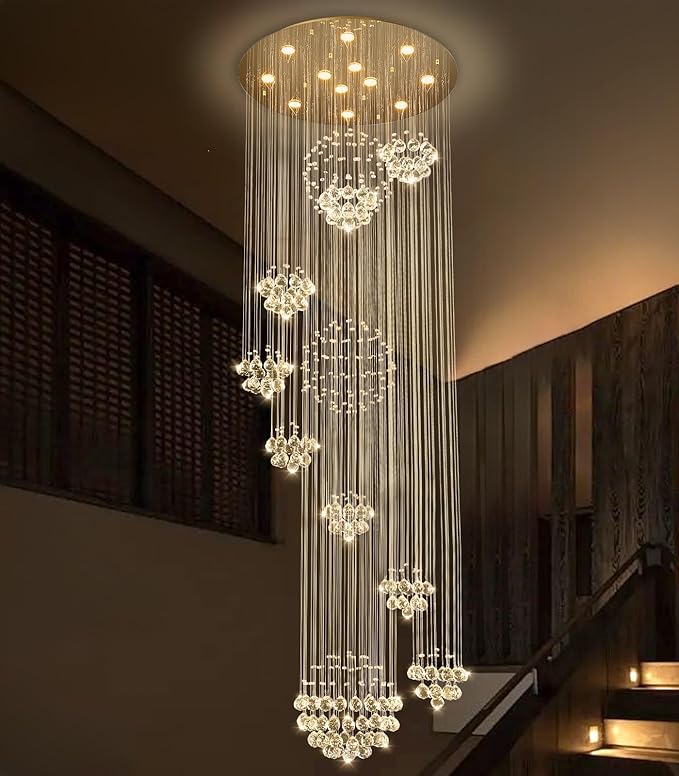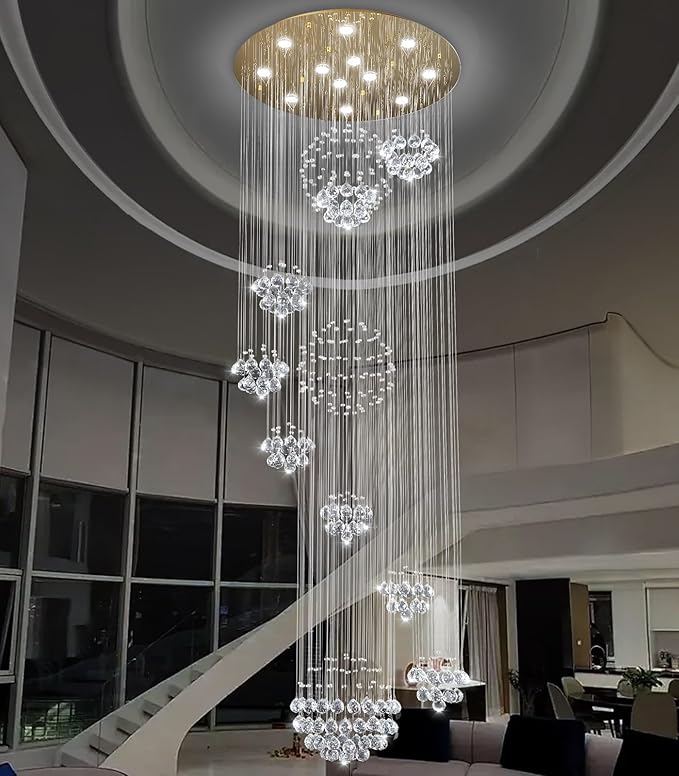- 【High Ceiling Foyer Chandelier】AC110-240V, each bulb is 5W LED, MAX 60W, chandelier total watte is 60W, 4800Lumen. High ceiling chandelier brightness light illuminate Villa, living room, foyer, hallway, entrance, hall, hotel, lobby, staircase