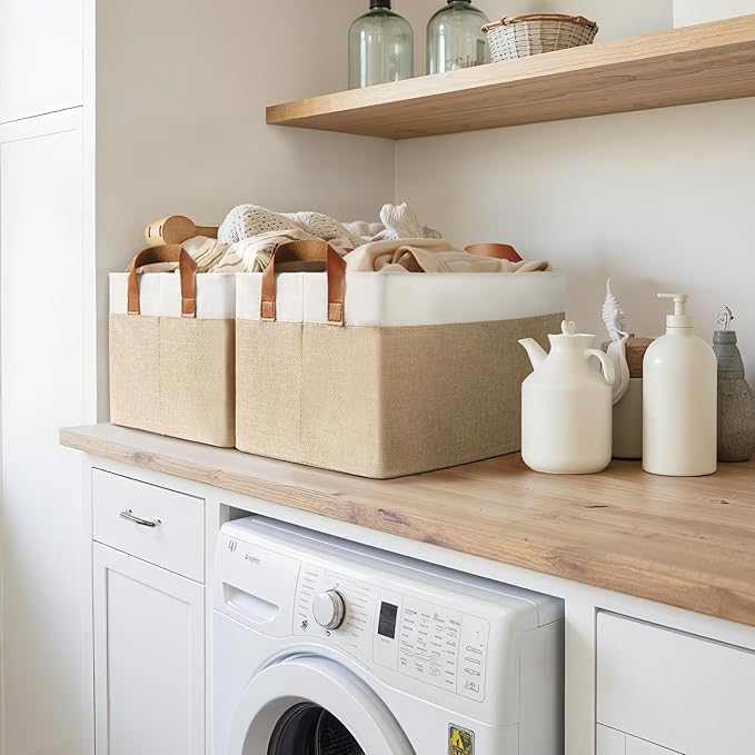 - Premium Material - These storage boxes are made of Imitation linen fabric, making them durable and easy to care for. The bottom uses thickened MDF board and can bear a load of up to 30 pounds.
