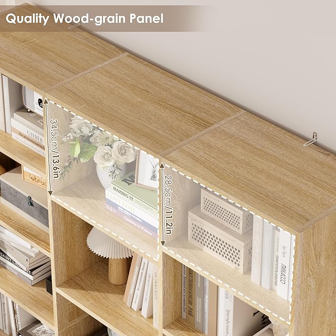 - Superior Quality & Stability: Constructed from premium and selected particle board, these wide bookshelfs are designed for long-lasting durability. Unlike adjustable shelves, the fixed shelves provide enhanced stability, ensuring the entire bookcase remains solid and secure. Each shelf can hold up to 33 lbs.