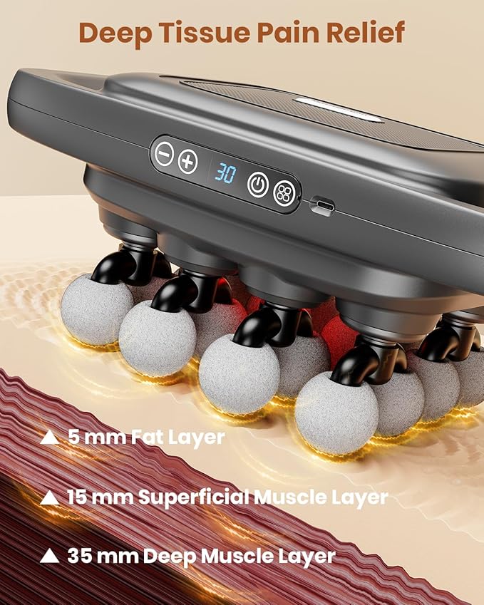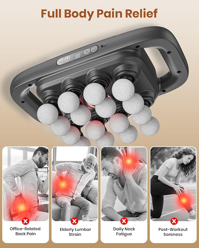 - [Deep Relief for Multi-Areas] Designed to target key muscle groups, this massager helps ease tension in the neck, shoulders, back, waist, and legs. Whether it's post-workout tightness, office strain, or daily fatigue, it delivers effective deep relief across your entire body.