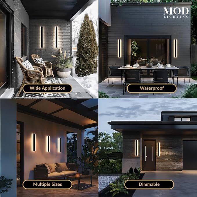 - 𝗪𝗶𝗱𝗲 𝗔𝗽𝗽𝗹𝗶𝗰𝗮𝘁𝗶𝗼𝗻: Long outdoor wall lights for House Front Door, Garage, Porch or Patio. Available in multiple sizes from 12 up to 94 inches can fit any space with the option to be synced to a single remote for convenience.