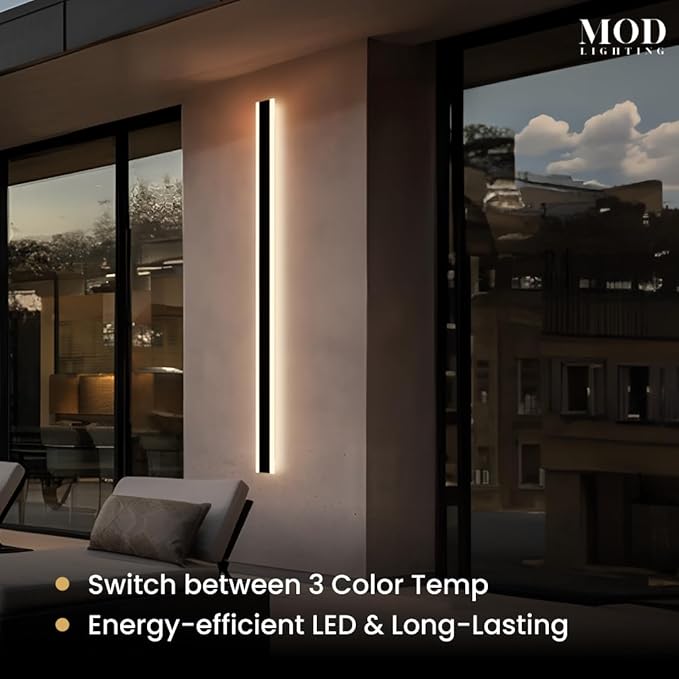 - 𝗪𝗶𝗱𝗲 𝗔𝗽𝗽𝗹𝗶𝗰𝗮𝘁𝗶𝗼𝗻: Long outdoor wall lights for House Front Door, Garage, Porch or Patio. Available in multiple sizes from 12 up to 94 inches can fit any space with the option to be synced to a single remote for convenience.