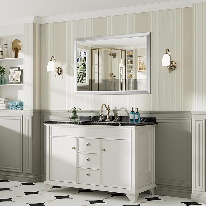 - 【Overall Aesthetics for Room Decor】The silver bathroom mirrors for over sink with its modern frame, not just for bathroom, it also can be used in a variety of scenarios, like vanity, farmhouse, bedroom, living room, dining room, entryway, fireplace, corner which is perfect to a room remodeling project and adds a stylish look to your house.