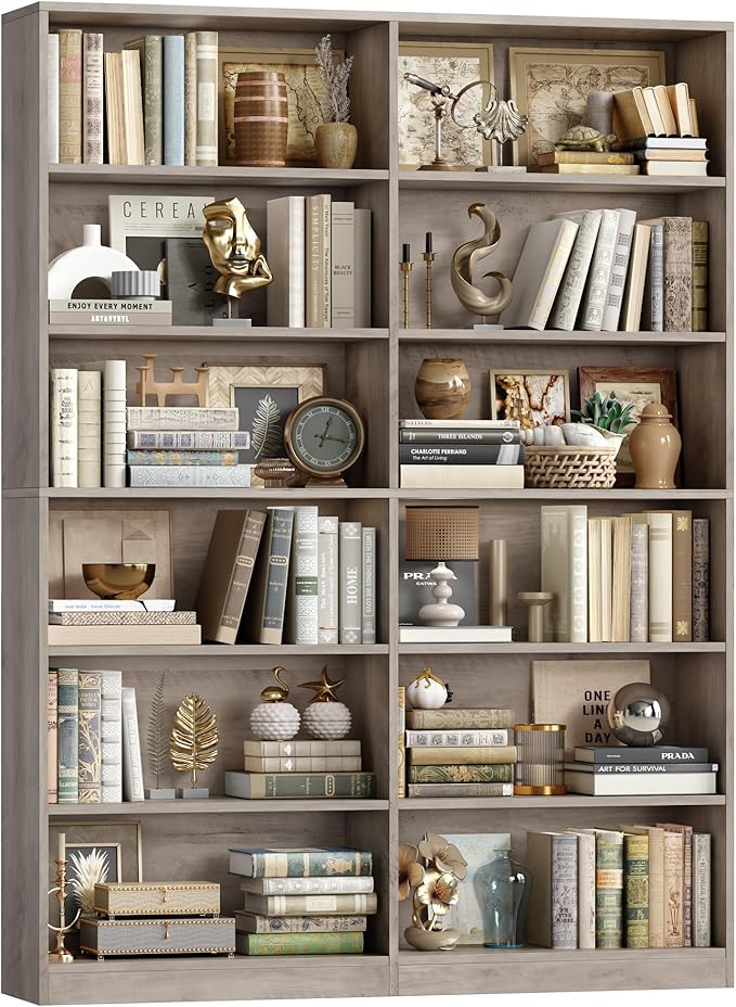 - 6-Tier Double Wide Bookshelf : This wash gray bookshelf features extra-wide(47.2'') and thickened shelves to expand abundant storage space for all your books and keep your room tidy and organized.