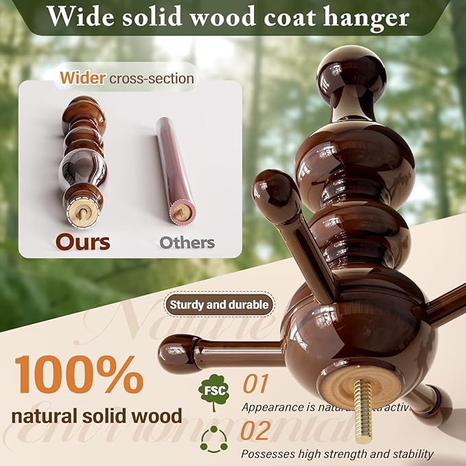 - ATTRACTIVE APPEARANCE STANDING COAT RACK: This wood hat and coat rack stand is designed in stylish and simple style, both attractive and functional, it can well match with a variety of decoration accents. The appealing design and finish of the standing coat rack tree, that it enhances the look of their space. The lip around the tray is designed to protect the items from falling.