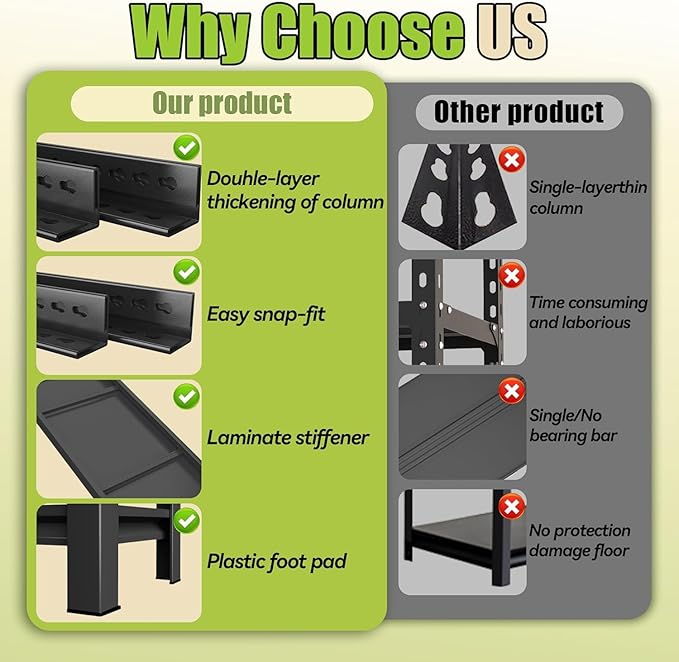 - [Multi-function book shelf organizer] This book shelf for bedroom provides you with 5 tiers of vertical open storage organizer, each tier can withstand up to 600 pounds of load, for you to organize all kinds of books, Garage Kits, CDs, souvenirs, decorations, electronics, etc. provide stunning visual effect and practical storage space for your living room, study room, bedroom. so that your home environment is more neat and orderly, full of interest in life