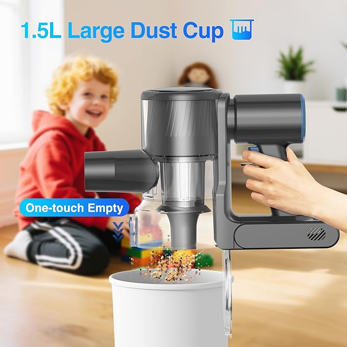 - ➤【450W & 40Kpa Super Suction Power】Zeforo cordless vacuum cleaner features a newly upgraded 450W brushless motor that delivers a powerful 40Kpa of suction power at 150,000 rpm. You can easily vacuum crumbs and dust from floors, pet hair from carpets, and dust from corners, walls and high places in a quiet environment (less than 68 dB noise). This cordless vacuum will make your cleaning easy and efficient.