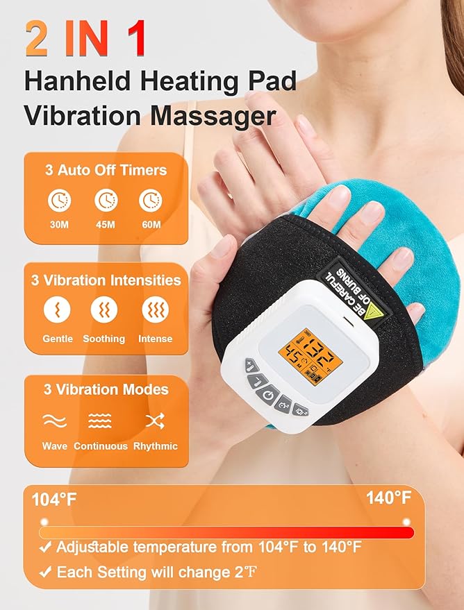 - Adjustable Heat Therapy (104℉-140℉): 30s fast heat up help soothe stiffness, fatigue, arthritis and pain with gentle or deep heat, adjustable to your comfort level for enhanced recovery and relaxation. Each setting will increase or decrease 2℉