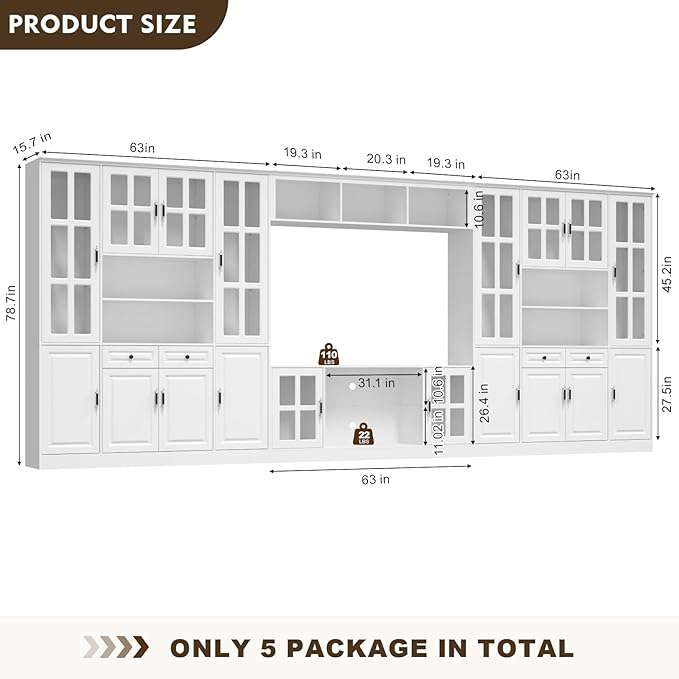 - Easy Assembly: This modern large entertainment wall unit comes with clear assembly instructions and all necessary tools and hardware. It's recommended to have 2-3 people assemble it, and if there are any questions, feel free to contact us