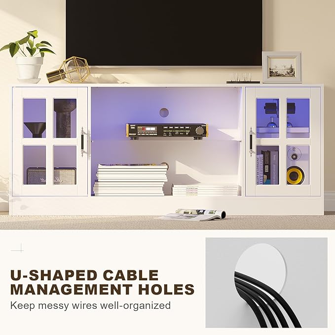- LED Lights: The TV stand with LED light features 7 vibrant colors and 3 dynamic modes, adjustable brightness, single color, gradient, and flash modes for a customizable lighting experience