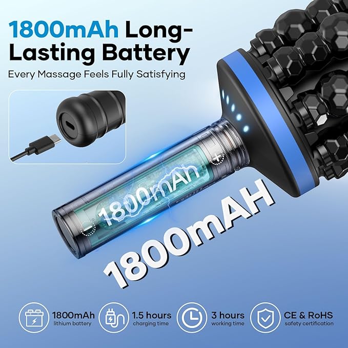 - 【1800mAh Large Battery & 3H Runtime|True Cordless Freedom】Equipped with a high-capacity 1800mAh rechargeable lithium battery, providing up to 3 hours of runtime—enough for multiple full-body sessions. Enjoy true cordless freedom without the hassle of outlets. Experience professional-grade massage anytime, anywhere, whether in your living room, office, or gym.