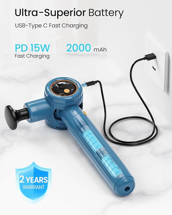 - 【15W PD Fast Charging & USB Type-C Charging】This handheld massage gun supports 15W PD fast charging—it fully charges in just 2.5 hours, compared to 4+ hours for conventional models. The long-life rechargeable battery supports continuous use for over 3+ hours on a single charge. This back massage gun also features auto-shutoff and overheating protection for safe and portable operation.
