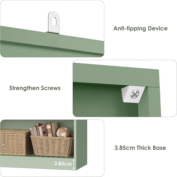 - Reinforced Structure + Triple Protection, Sturdy & Safe: This book shelf is made with 15mm thickened boards, each shelf supports up to 25kg (55 lbs). Features anti-tip metal brackets + reinforced back screws + 3.85cm sturdy base for triple protection, ensuring stability and safety.