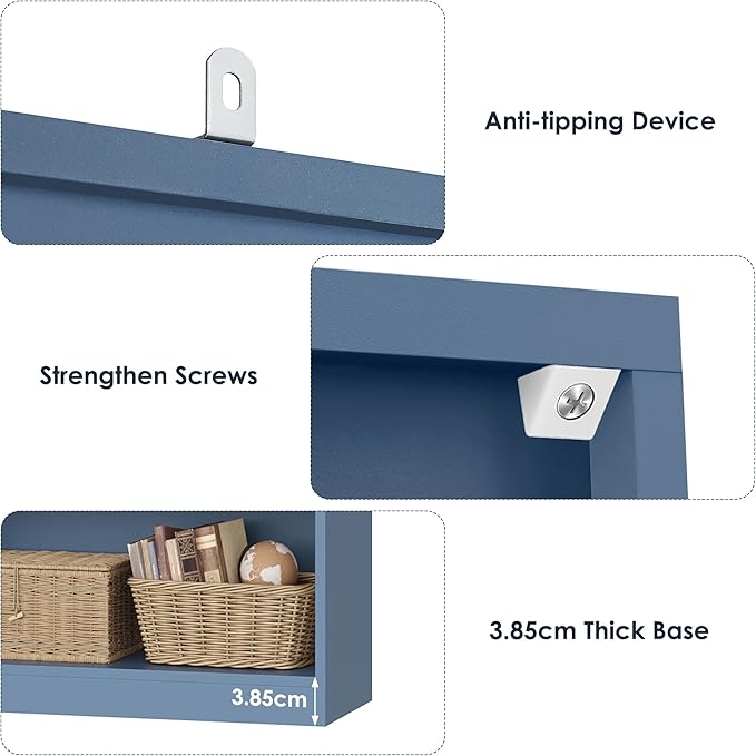 - Reinforced Structure + Triple Protection, Sturdy & Safe: This book shelf is made with 15mm thickened boards, each shelf supports up to 25kg (55 lbs). Features anti-tip metal brackets + reinforced back screws + 3.85cm sturdy base for triple protection, ensuring stability and safety.