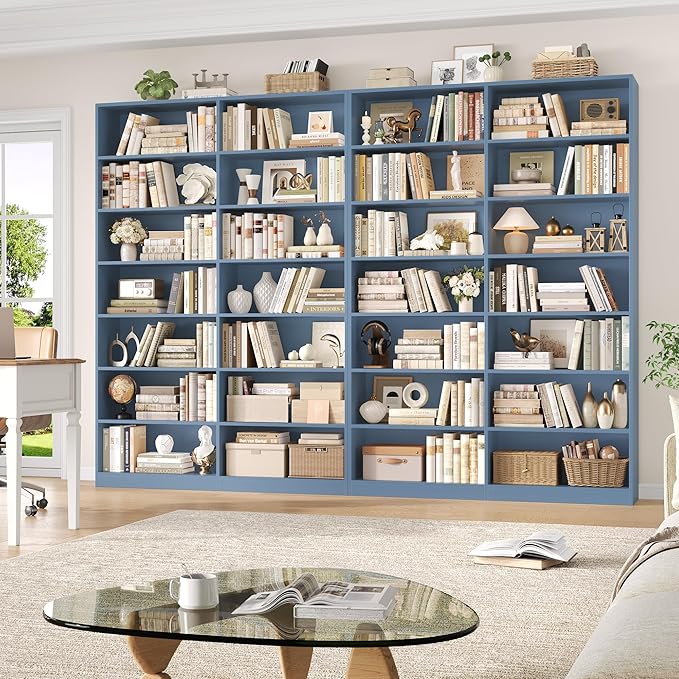 83.6" Tall Bookshelf and Bookcase, 7-Tier Extra Large Bookshelf with Double Storage, 14 Open Display Shelves for Home Office, Study and Living Room, Blue