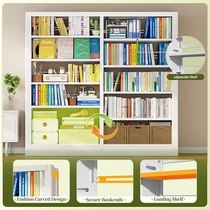 - [Stable & Safe Design for Families with Kids & Pets]: Heavy-Duty Bookshelfs come with anti-slip pads to prevent floor scratches, and safe bookends keep books and items from falling off, while the thickened base boosts stability and load-bearing capacity. 71"H tall bookcase features a rounded curved frame with no sharp corners to avoid accidental bumps. Plus, our wide bookshelf includes an anti-tip device. This is especially family-friendly for those with pets or kids.